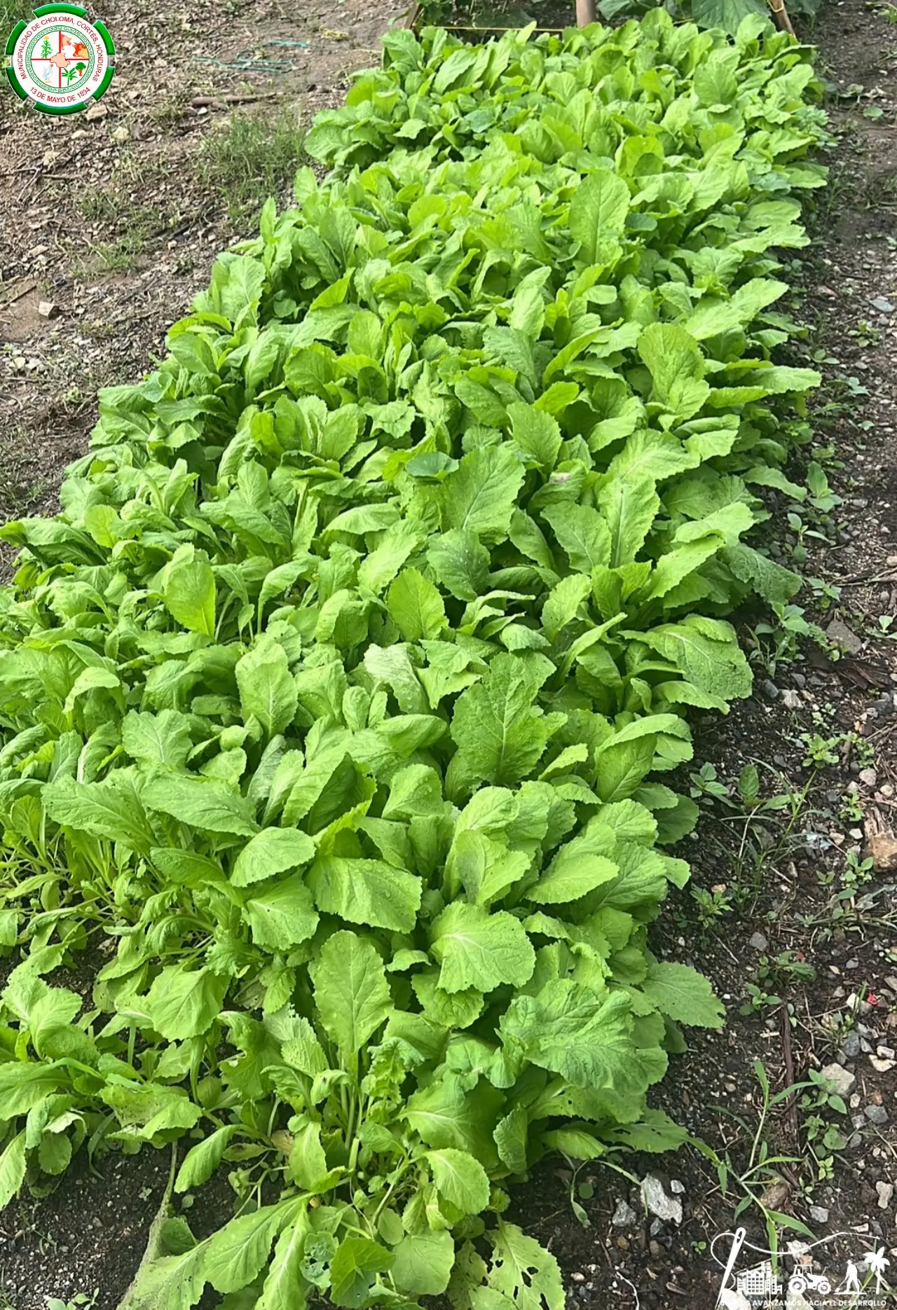 Actividad práctica del programa de Educación Ambiental que incluye levantamiento de camas de cultivo con tierra abonada y cosecha de hortalizas en el Huerto Orgánico de Ciudad Mujer Choloma.